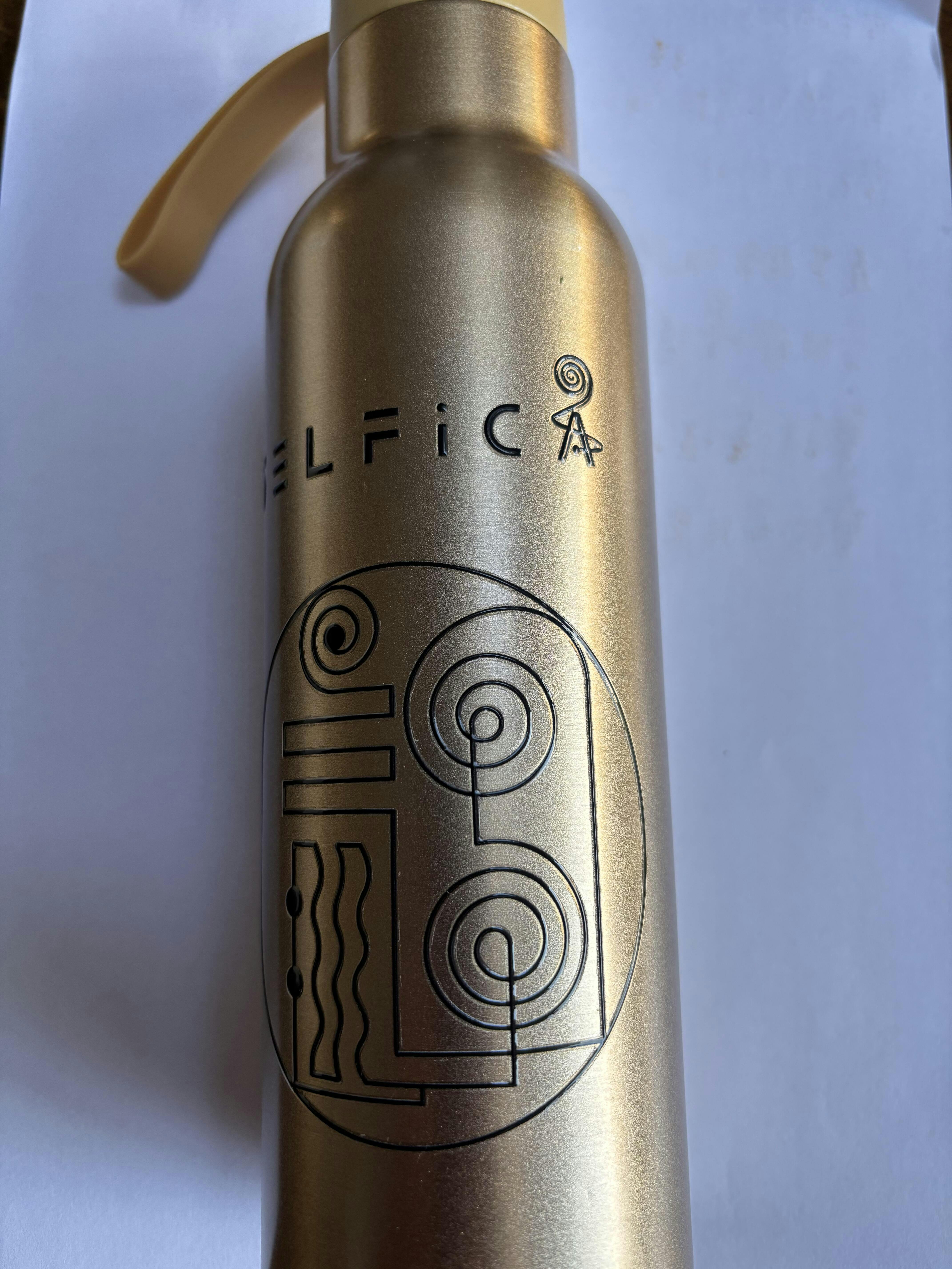 Printed with a unique Selfic circuit—based on ancient energetic principles developed through decades of research at Damanhur—this device infuses your water with harmonizing energy fields.