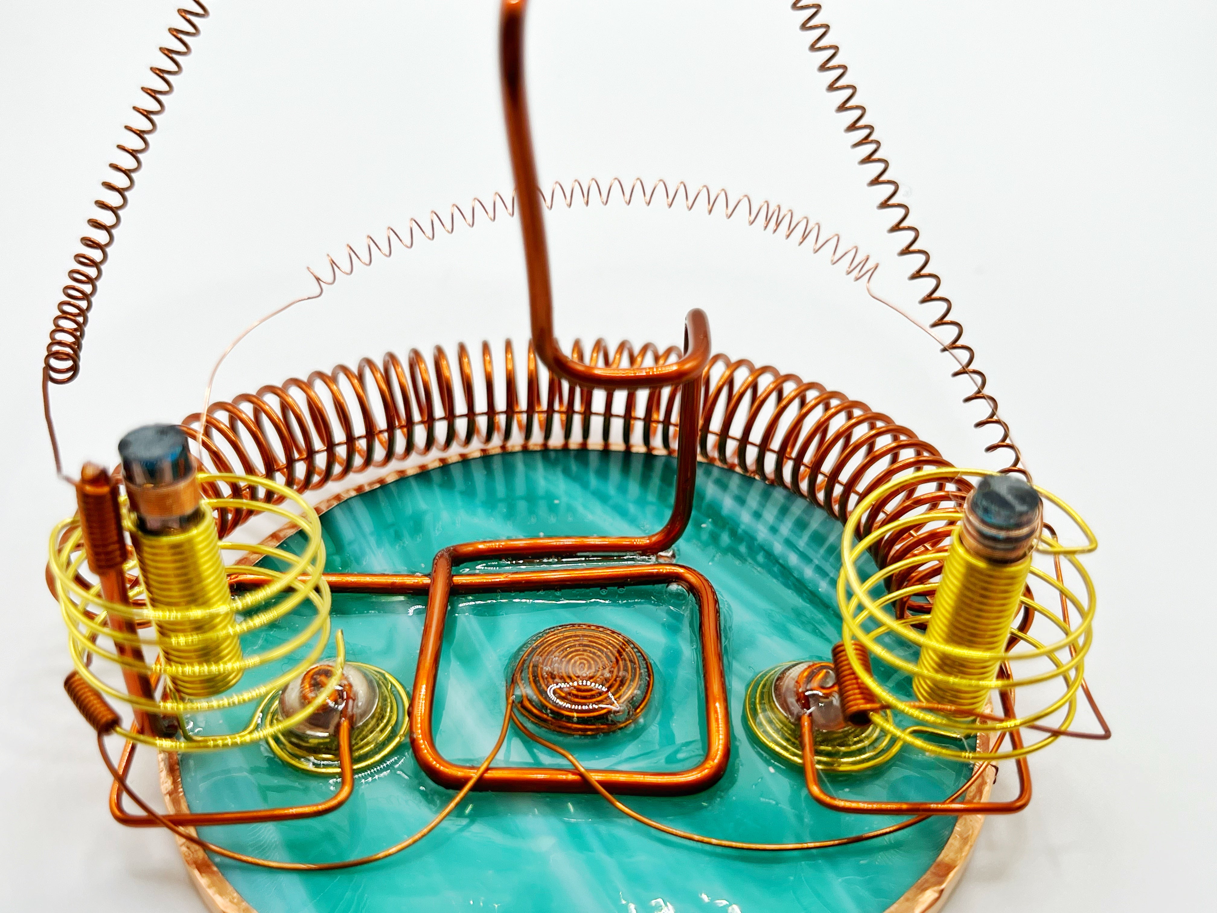 To remove the crystals, avoid any direct contact with your hands. Using pliers or black gloves, carefully detach them and send them to SelEt by post for cleansing. We will then ship a new set of crystals, attuned and ready to be reinstalled in the device, ensuring its continued ability to transform and elevate the energetic ambiance of any space.