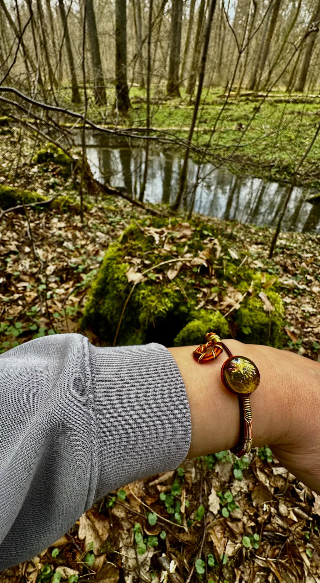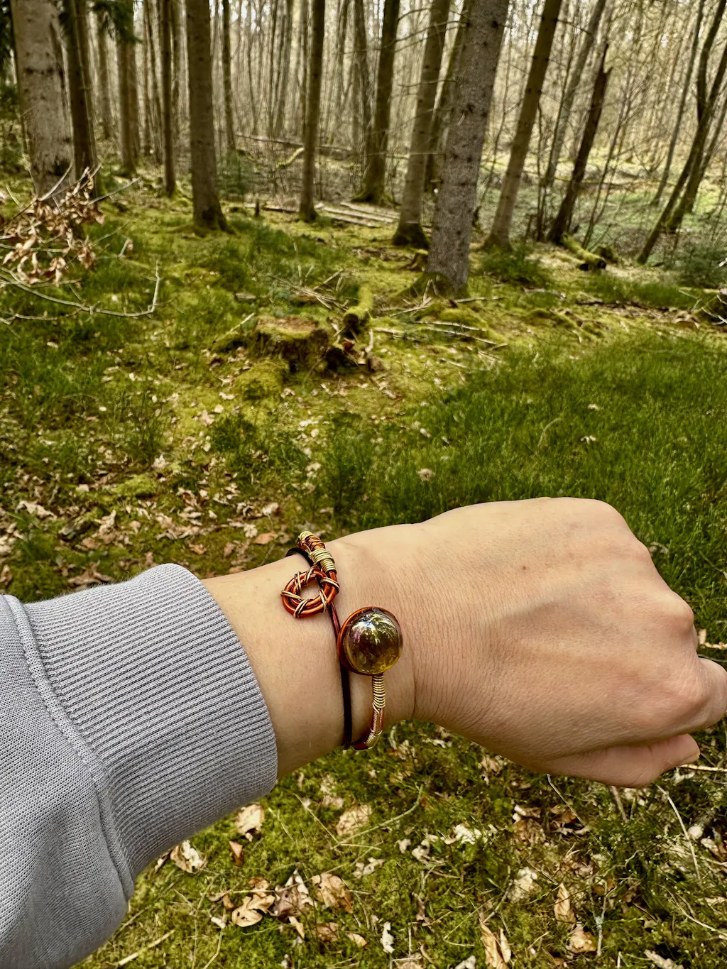 La perla inserita nel bracciale è realizzata in vetro soffiato artigianale fatto a mano. Contiene una piccola foglia di mica, un minerale cristallino che funge da deposito di memoria per il programma selfico. Questo concetto di memoria indica che questo bracciale può "apprendere" specifici schemi energetici, che poi replica per un'efficacia ottimale.